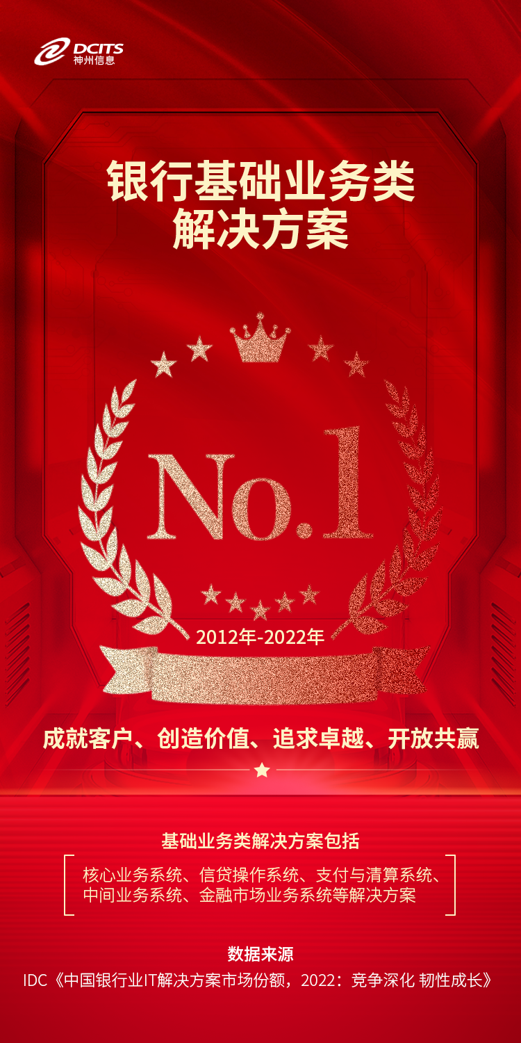 7月13日,IDC 正式发布《中国银行业IT解决方案市场份额,2022:竞争深化 韧性成长》报告,BB贝博艾弗森官网凭借雄厚的金融数字化实力再次豪取多项市场第一。